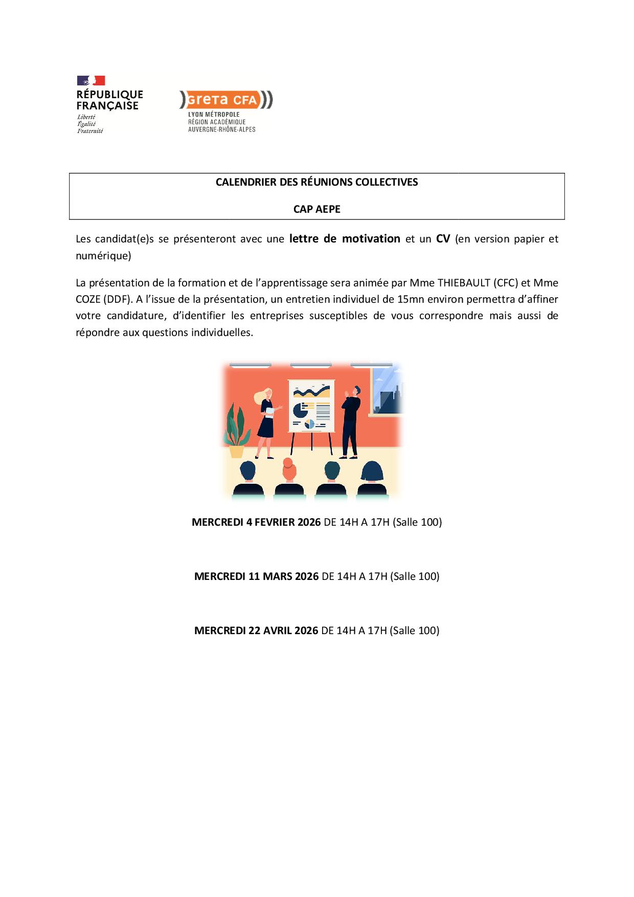Calendrier des réunions collectives CAP AEPE