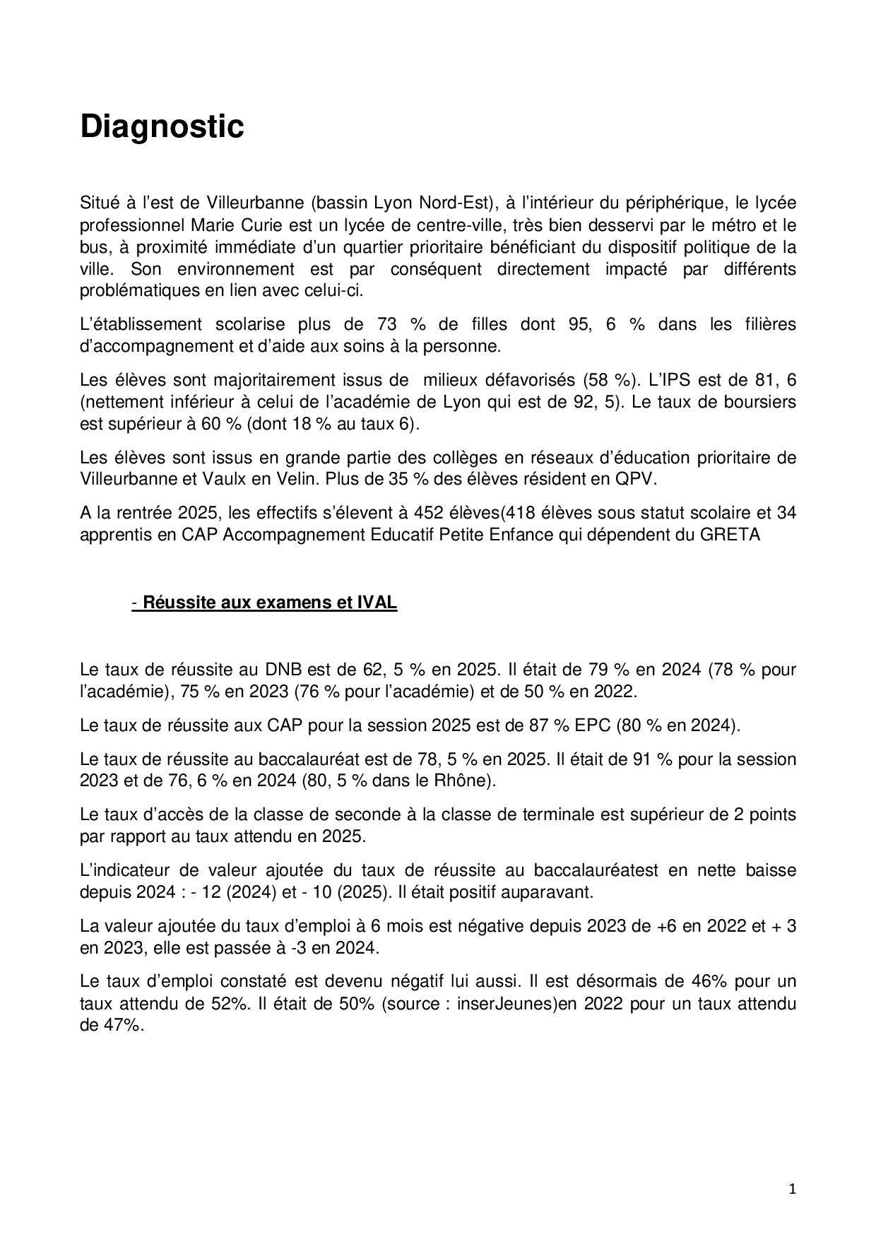 La politique éducative et pédagogique du lycée